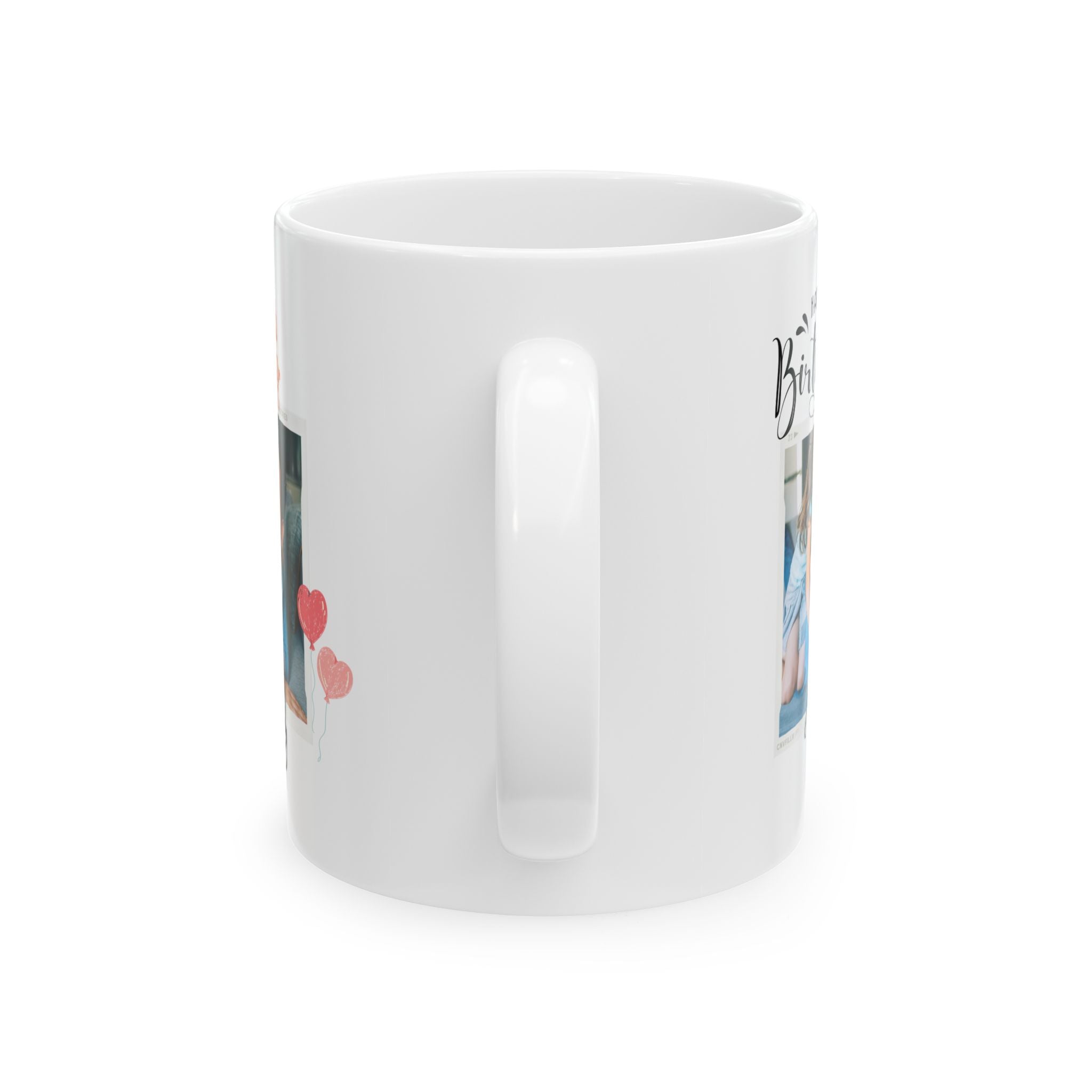 a glossy ceramic mug that turns morning coffee into a small, personal celebration. Warm photos and soft watercolor hearts wrap the white surface, bringing a handmade, sentimental touch to everyday sipping. Comfortable C-handle and a shiny finish make it easy to reach for during long mornings or slow weekend afternoons. Durable, lead- and BPA-free ceramic means this mug holds both hot drinks and memories with equal care Custom drinkware with family photo