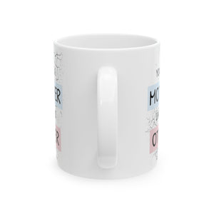 This glossy ceramic mug brings a quiet, comforting energy to slow mornings and late-night study sessions. Soft pastel blocks and delicate botanical accents wrap the white surface, creating a gentle visual pause between sips. It feels familiar in the hand — the C-handle sits naturally, the shiny finish catches the light, and bright, crisp printing keeps the artwork looking fresh through daily use. Warm tea, strong coffee, or a cozy cocoa: this mug makes those small rituals feel intentional and a little more beautiful. It suits someone who appreciates calm, subtle design and wants a dependable, cheerful cup on their desk, in the studio, or by the window during a rainy afternoon.